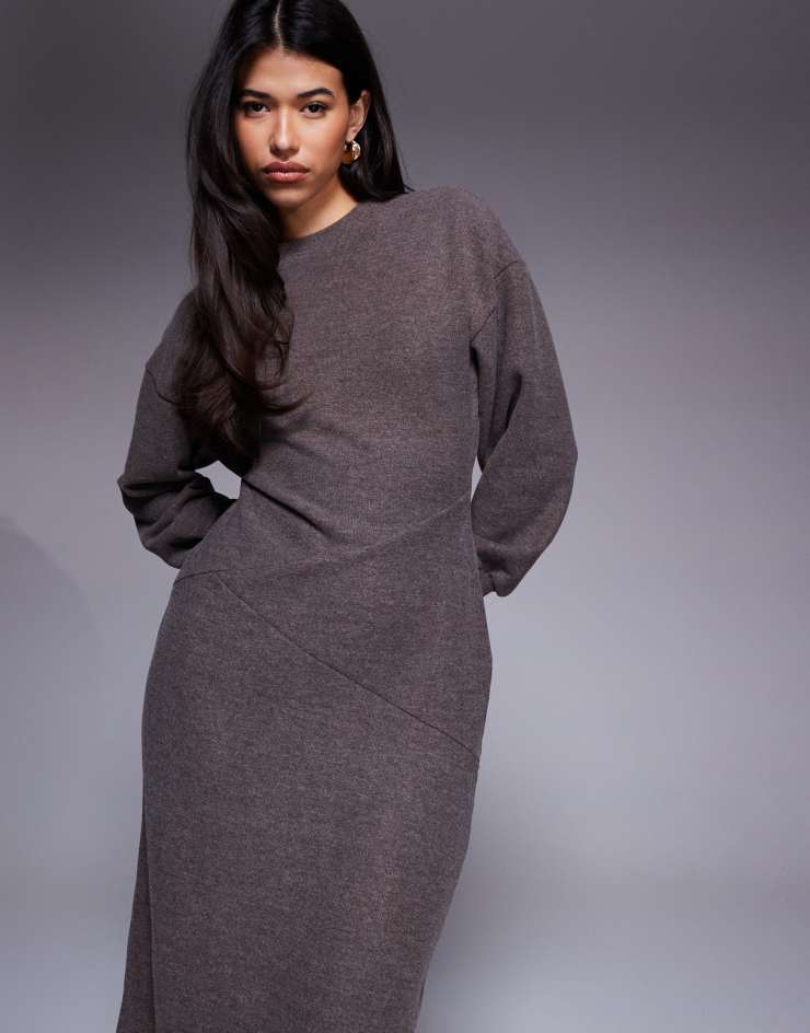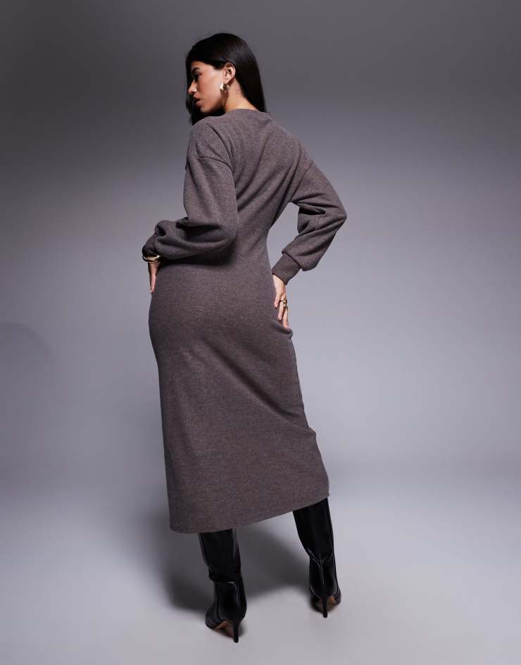 ASOS DESIGN supersoft long sleeve seam detail maxi dress in chocolate heather