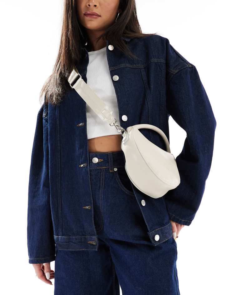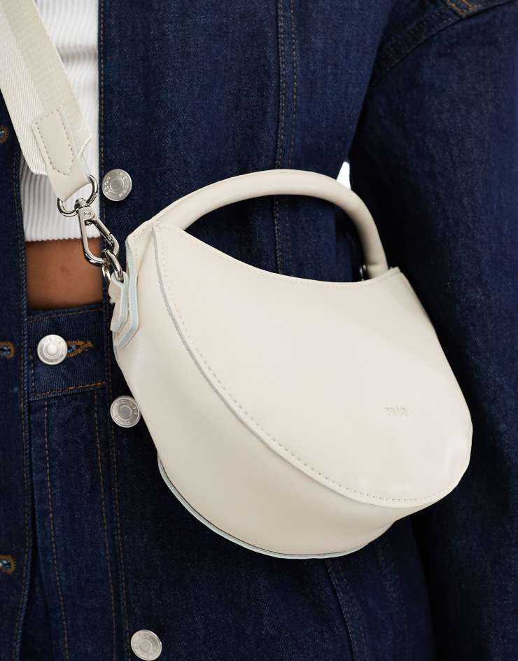 PASQ circle grab bag with crossbody strap in off-white