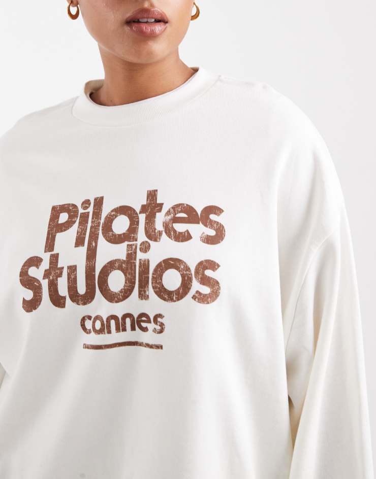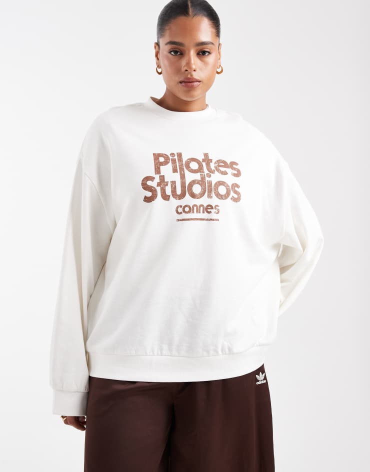 ASOS DESIGN Curve oversized sweatshirt with pilates studios graphic in cream