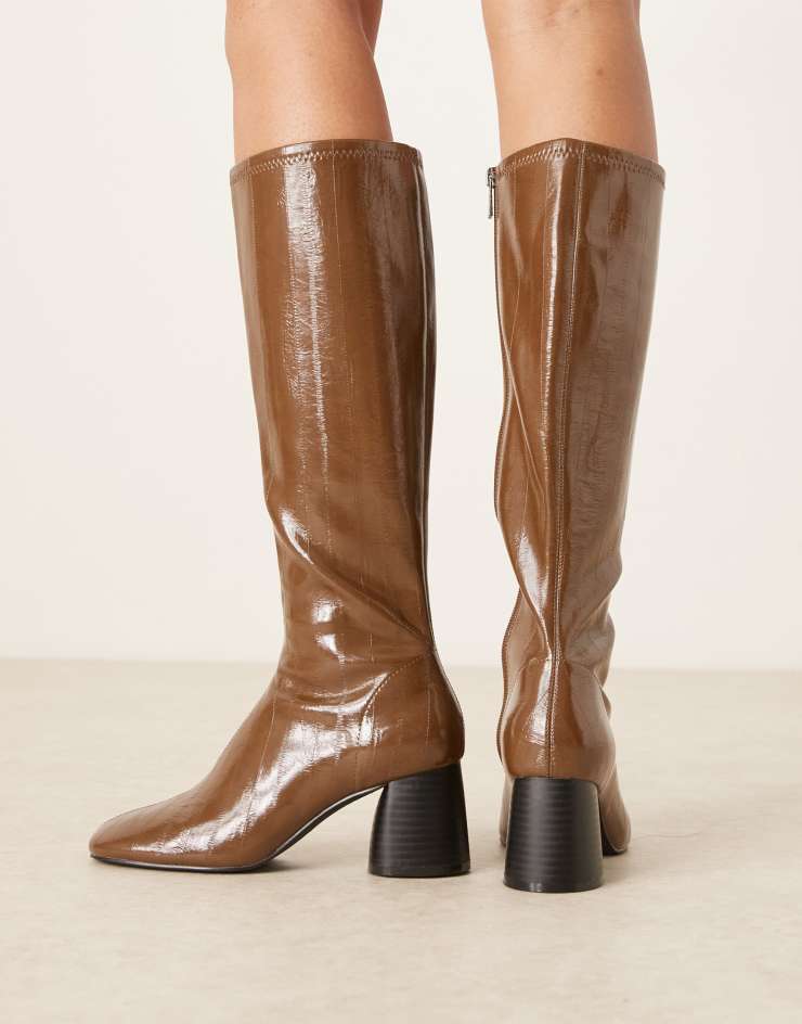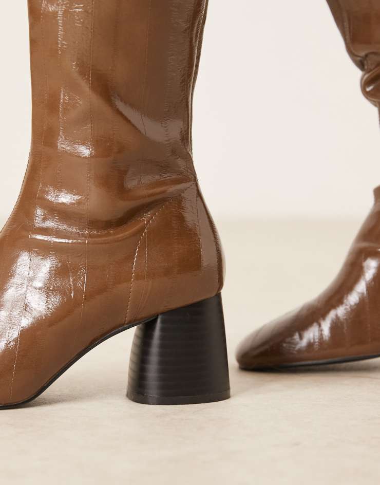 ASOS DESIGN Cassidy round toe knee boots in olive eel