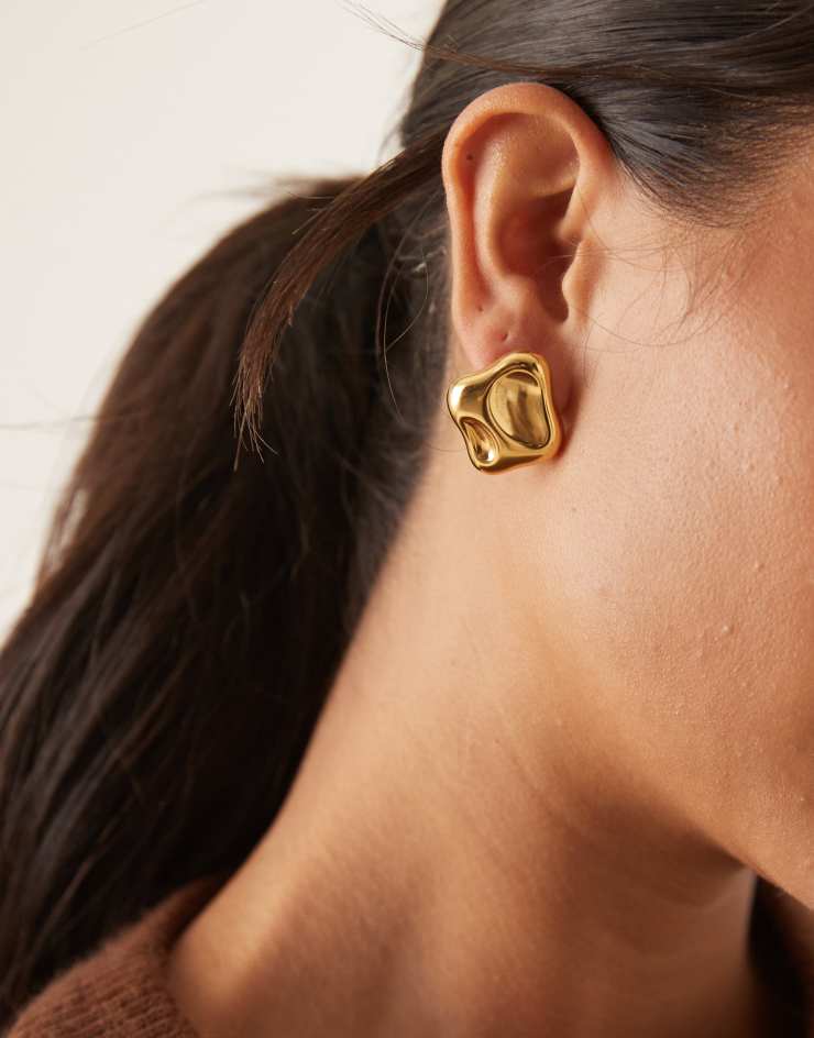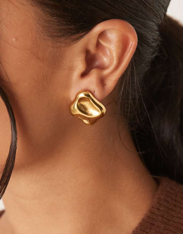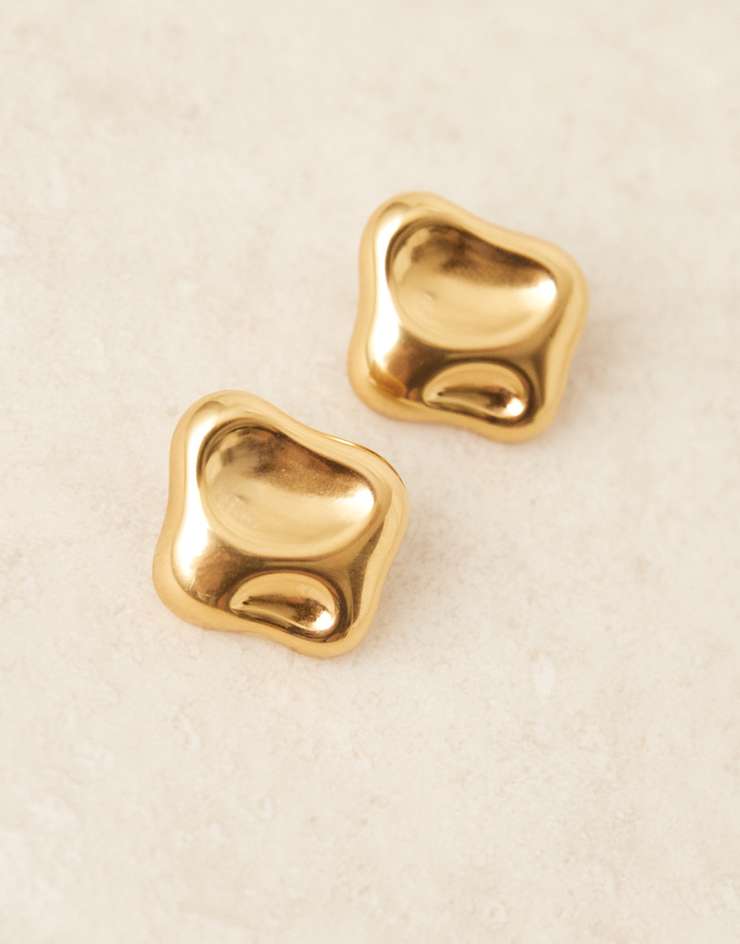 Lost Souls molten square stud earrings in 18kt gold plated stainless steel