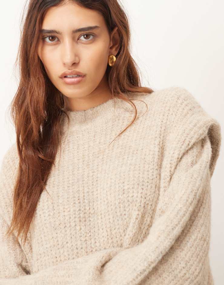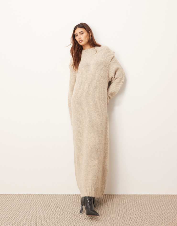 ARRANGE rib knit shoulder pads maxi dress in oat