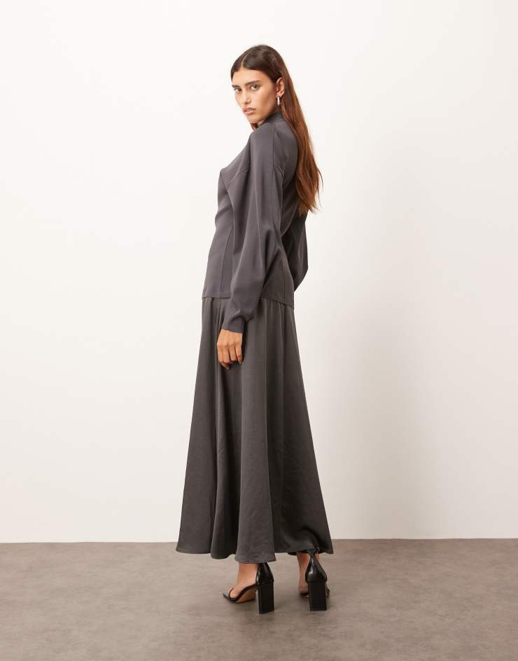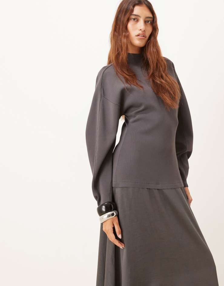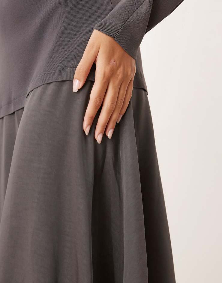 ARRANGE hybrid knit mix sculpted sleeves maxi dress in charcoal